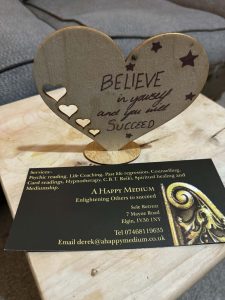 Any problems please text or call 07468119635 or email derek@ahappymedium.co.uk
